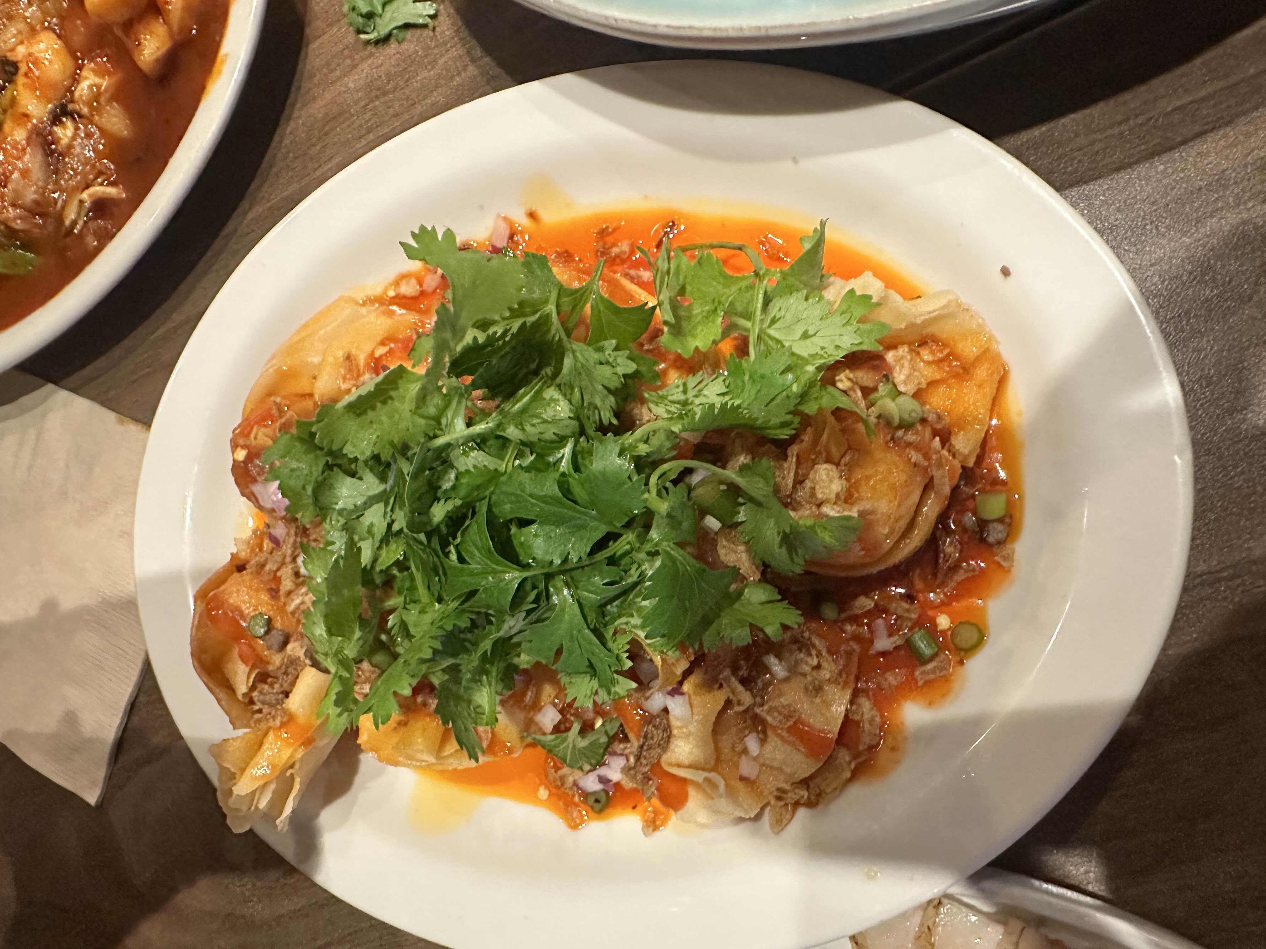 3. **새우 만두**: 이 만두는 겉은 바삭하고 속은 탱글한 새우살이 꽉 차 있어 식감이 일품입니다. 매콤한 소스와 곁들여 먹으면 상쾌한 맛을 더해, 술안주로도 훌륭하다고 평가됩니다. 특히 바삭한 식감과 새우의 신선함이 조화로워 많은 이들의 사랑을 받고 있습니다
