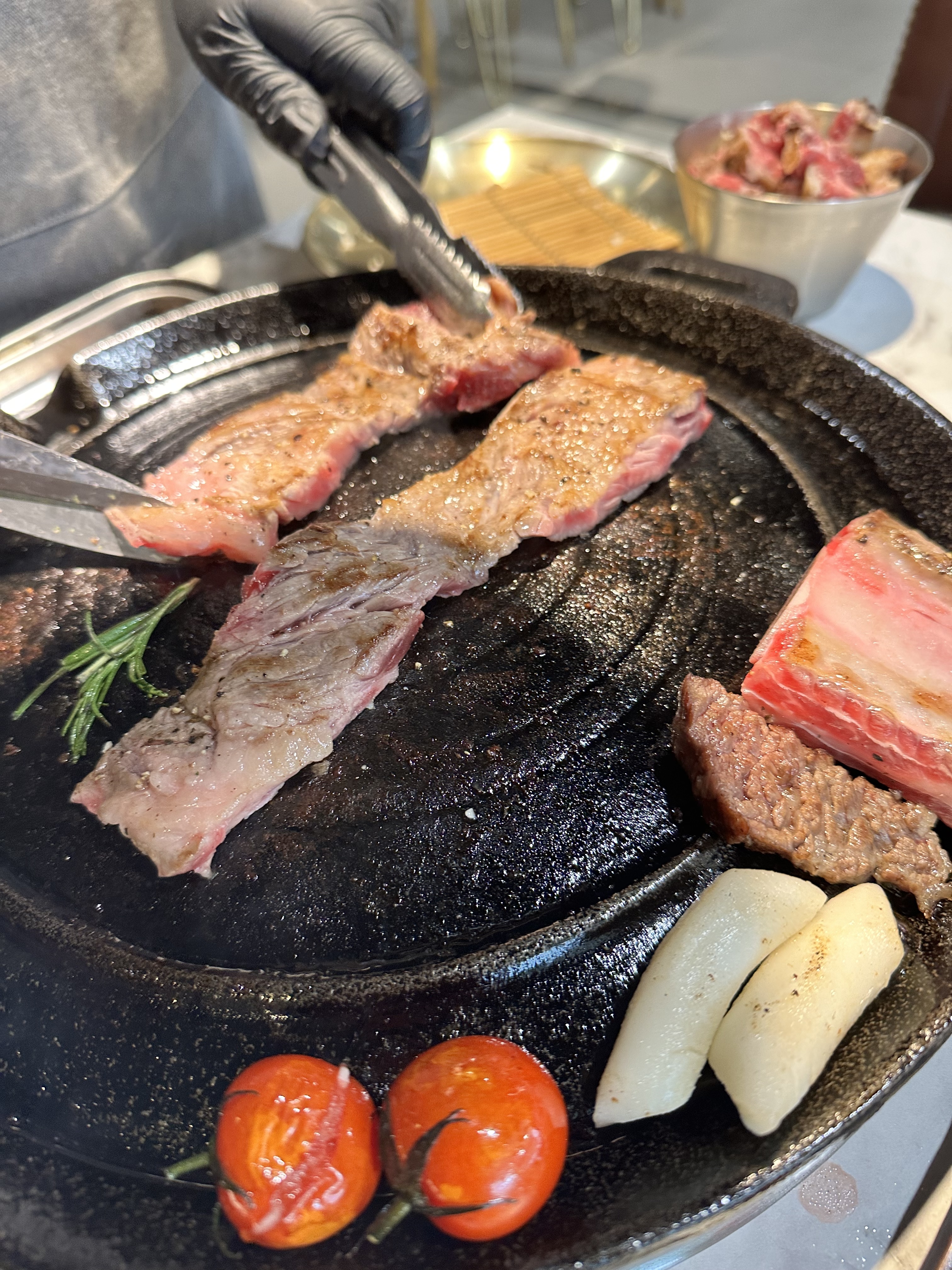 애피타이저로는 1인당 하나씩 한우 타타기가 제공되는데, 깔끔하면서도 고급스러운 느낌을 더해주는 첫인상이 인상적입니다.